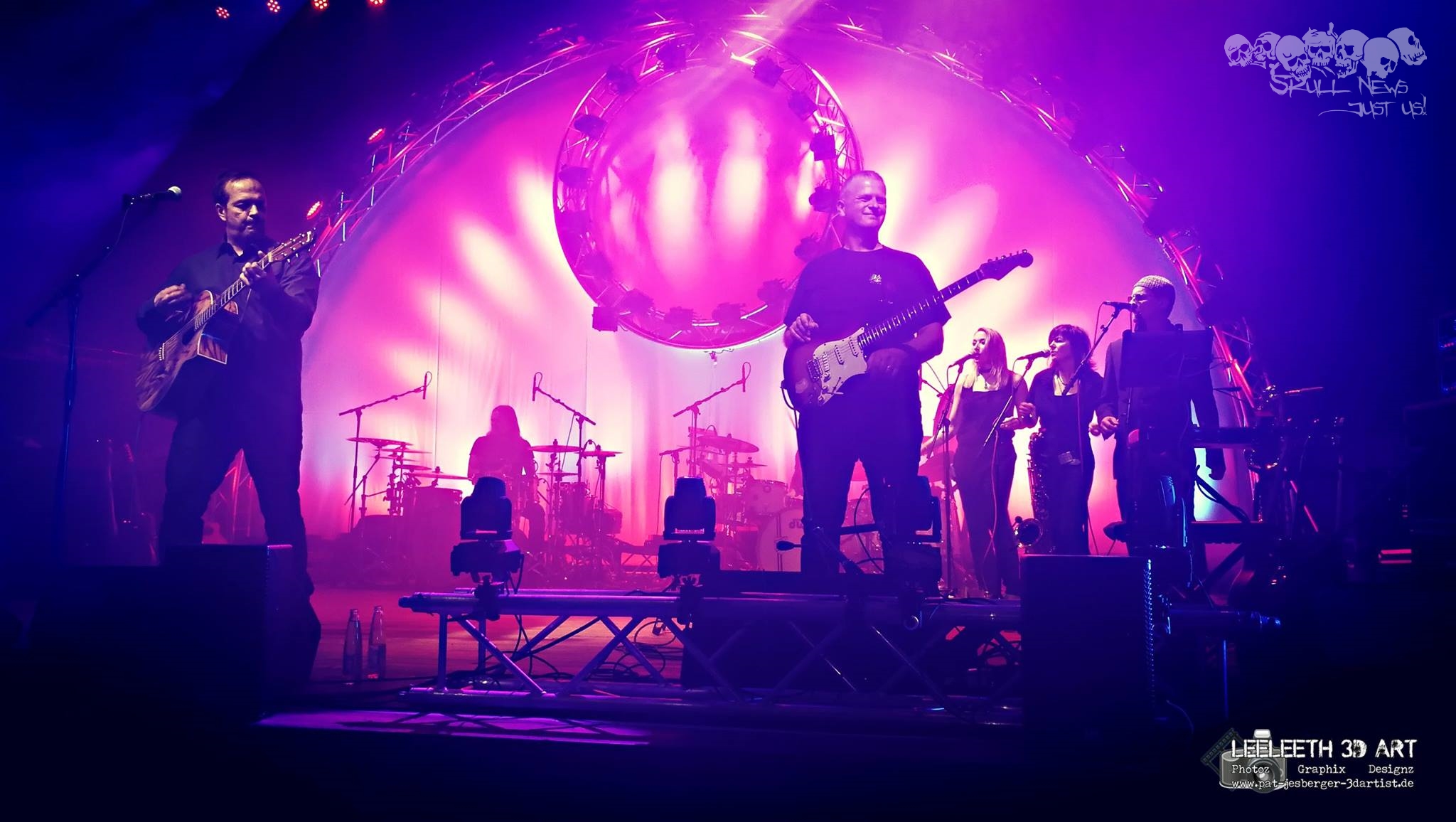 Der dritte Uwe des Abends, nämlich der Leadgitarist des PFP, war sichtlich aufgeregt und freute sich auf das was sich vor Ort abzeichnete. Er konnte es fast nicht aushalten endlich mit seinen Bandkollegen und Bandkolleginnen auf der Bühne zu stehen, den Moment auszukosten an dem sich der Vorhang öffen würde und als er das endlich mit kleiner Verspätung tat, brandete begeisterter Applaus auf, die Zurufe und Freudenschreie des Publikums waren unüberhörbar, endlich, endlich ging es los! Von Anfang an gab es volles Rohr auf die Sinnesorgane, das Licht tauchte die Menge in ein Meer an Begeisterung, die sphärischen, psychedelischen, spacigen Klänge liesen Herzen höher schlagen… “ Als die ersten Klänge von “ Shine on You crazy Diamond “ erklangen ging ein ehrfürchtiges Raunen durch den Saal, Herzen öffneten sich und Augen begannen zu funkeln und man sang berührt mit. “ High Hopes, Sorrow und Hey You – Time, Money get away, the dark Side of the Moon “ alle diese Songs hielten das Publikum in ihrem Bann.Bei “ another Brick in the Wall“ gab es kein Halten mehr und das Auditorium ging begeistert mit; bei “ wish You were here “ floss so manche Träne und das war einer der absoluten Gänsehautmomente diesen Abends. Die Stimme von Frank Altpeter nahm einen absolut gefangen, man sah dem Leadgitaristen Uwe Sicks buchstäblich an, wie sehr er die Musik fühlte und intonierte, die beiden Drummer Thomas Luther und Kai Kessler lieferten teilweise synchron eine grandiose Performance, Karl-Heinz Luther an den Keys lies einen träumen und bescherte einen wohligen Schauer nach dem anderen mit seinen den Klaviaturen entlockten Tönen, Andreas Mittermüller am Bass sorgte für ein angenehmes tiefwarmes Bauchgefühl und Jennifer Mittermüller, Sabine Simmet-Raber und Gerhard Bleich sorgten mit ihren Backvocals für angenehme Empfindungen, hervorgerufen alleine durch ihre Stimmen, was die beiden Mädels eindrucksvoll mit ihren Solis bewiesen. Gerhard zog einen mit seinen Instrumenten wie unter anderem dem Saxophon in seinen Bann und auch seine Stimme lies einen immer wieder erfreut aufhorchen. Souverän bewies jeder der Musiker bei den jeweiligen Soloparts, zu was er in der Lage ist. Die Drummer, sowie der Sänger zeigten zudem gekonnt, dass auch sie die Saiteninstrumente aufs trefflichste beherrschen. Die Stimmung im Saalbau war auf dem Siedepunkt und als sich das Konzert dem Ende näherte, lies man sich nicht lumpen und zwei Mal bitten als die extatisch aufgeladene Menge vor der Bühne die Musiker nicht gehen lassen wollte und nicht endend wollende Minuten lang “ Zugabe – Rufe “ erschallen liesen und das Publikum wurde erhört und nicht enttäuscht. Mit “ Comfortably Numb und Run like Hell “ lies man diesen fantastischen Abend, der seines gleichen sucht ausklingen und verlies erschöpft, schweissgebadet und überglücklich die Bühne.