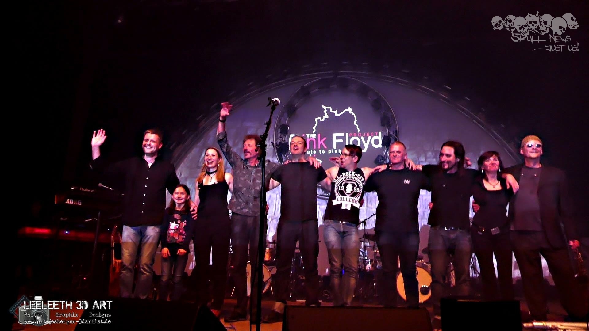 Alle Beteiligten, die Crew taten einen wundervollen Job und trugen mit zu dem Gelingen des Abends bei. Angefangen bei den symphatischen Menschen am Eingang, die einem liebevoll die Bändchen anzogen, den Damen beim Getränkeverkauf und der Garderobe, ohne die es an so einem Abend gar nicht geht. Die Tontechniker Danny, Dirk, Dennis und Kai haben spitzen Arbeit geleistet , die technische Unterstützung von KM-Audio, Eventech-pro, HK-Audio & Hughes & Kettner trug das Ganze zum Erfolg. Die beiden Stamer Brüder – Gründer von Hughes und Kettner waren auch da. Auf jeden der Beteiligten war absoluter Verlass und jeder wuchs über sich selbst hinaus. Der Saalbau erlebte einmal mehr eine Veranstaltung epischen Ausmasses und braucht den Vergleich mit den grossen Bühnen absolut nicht zu scheuen, schon gar nicht wenn heimische, regionale schwere Kaliber wie das Pink Floyd Project hier aufspielen. Davon wird man seinen Kindeskindern noch mit glänzenden Augen berichten.