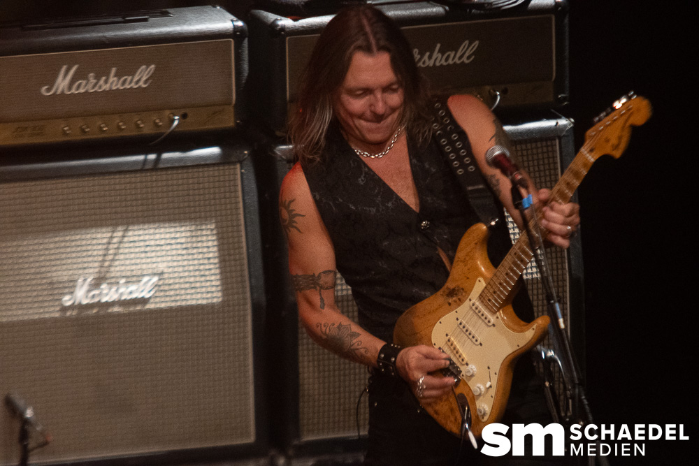 Die ältesten Stücke stammen aus seiner Zeit mit Trapeze, Way Back To The Bone, das auf annähernd zehn Minuten ausgedehnte Titelstück ihres 1970er Albums Medusa und eben jenes Coast To Coast, das Glenn Hughes als melancholische Homage an seinen verstorbenen Guitartech Mike mit seiner Gibson Hummingbird intonierte…ein Gänsehaut-Moment.