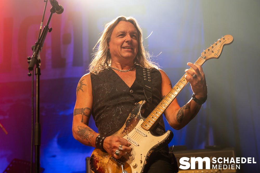 Frisch und unverbraucht stürzte sich das Power Trio, neben dem singenden Bassisten erlebten wir den dänischen Weltklasse-Gitarristen Soren Anderson, sowie den Multi-Instrumentalisten Ash Sheehan am Schlagwerk, in ein knapp 120 minütiges Abenteuer. Mit Soul Mover hatte man sofort die typischen Elemente im Sound des Hall Of Famers parat, knall harter Rock, mit einem Little Touch Of Soul.