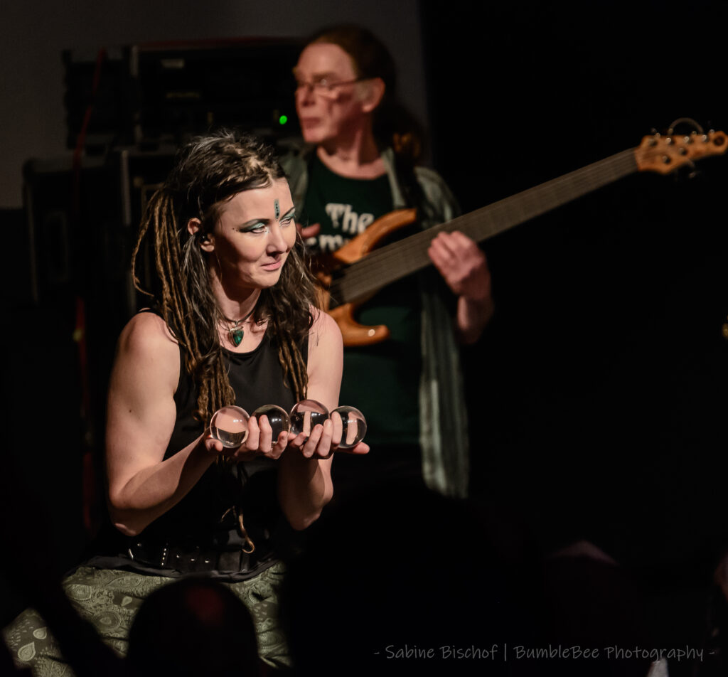 The Emerald Dawn zogen jeden mit ihrer Multiinstrumentalität und einem nicht in Schubladen zu steckenden Sound in den Bann. Katrina „Tree“ Stewart, Keyboarderin/Sängerin/Flötistin usw, verzauberte uns noch zusätzlich mit dem Jonglieren von Glaskugeln. Magisch!