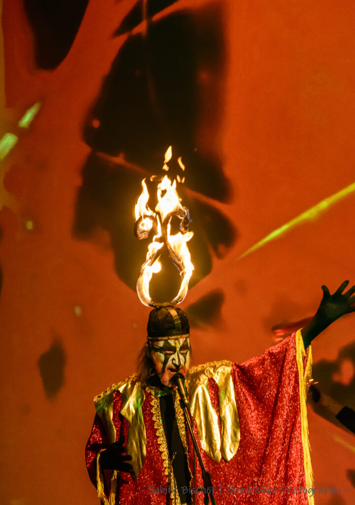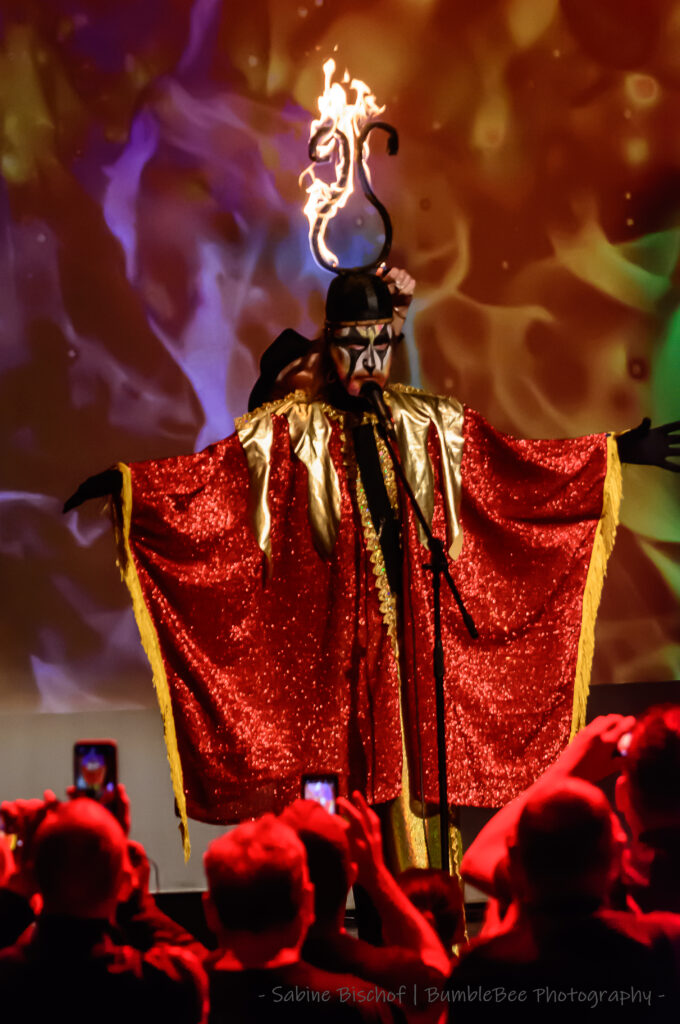 Arthur Brown – Enfant terrible, Legende, und ältester Teilnehmer des Festivals. Macht er außerhalb doch einen eher fragilen Eindruck, wandelt sich das Bild, sobald er die Bühne betritt. Gefühlt mehr Kostümwechsel als Beyoncé, assistiert von seiner Frau brennt ihm auch recht schnell der Helm zu „Fire“, als ob sein Signature Song nicht bereits fast 60 Jahre auf dem Tacho hätte. Mit seiner Band sorgte er für einen denkwürdigen Schlußpunkt eines sehr spannenden Festivals.